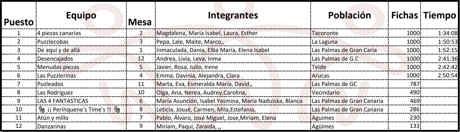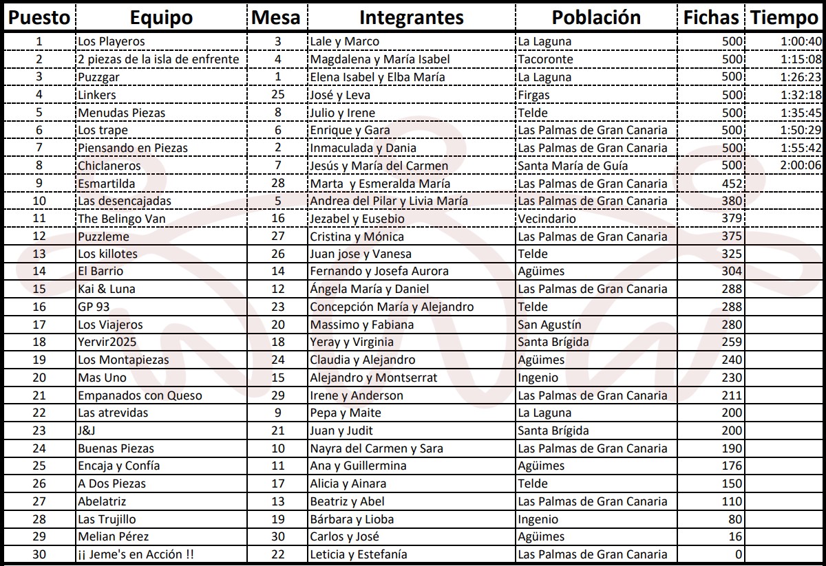 ¡CLASIFICACIÓN! I CONCURSO DE PUZLES 2025 Villa de Agüimes Clasificaciones por parejas Clasificaciones por grupos